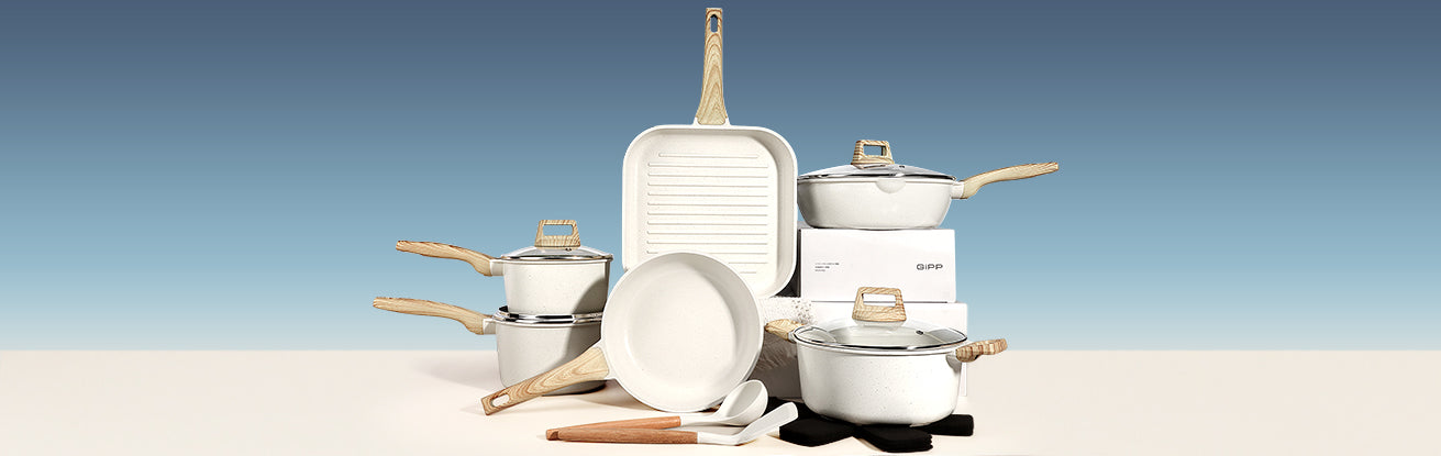 GiPP 11Pcs Nonstick Pots and Pans Set, Detachable Handle, Oven Safe